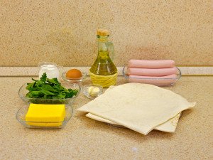 На нее выложить сосиску.