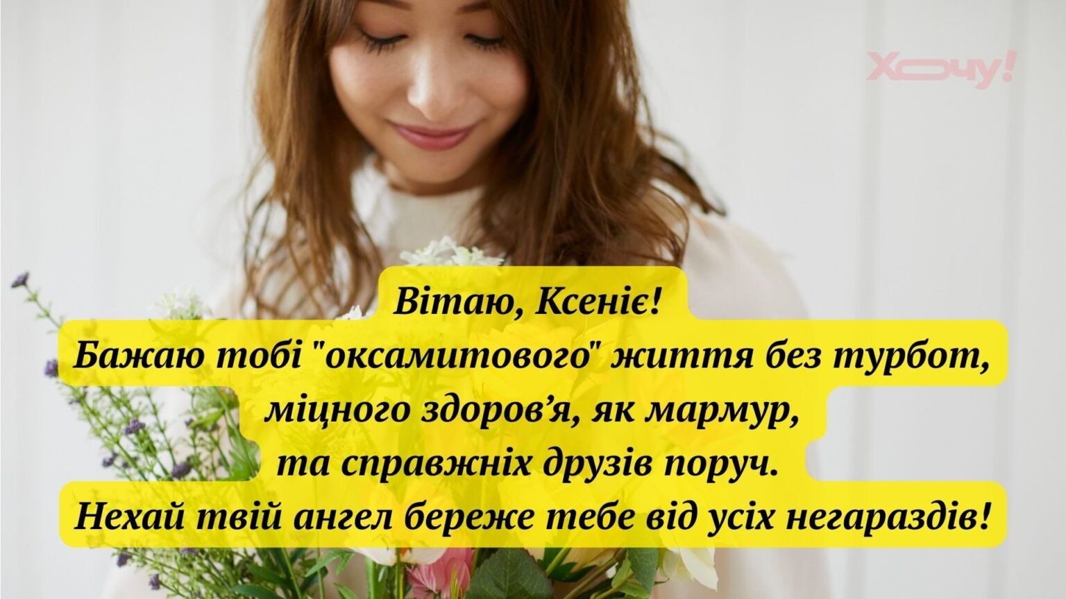 Ксению поздравляем мы сегодня! С именинами, с прекрасным днем. Чтобы в День ангела цвела ты и каждый день дарила всем улыбку. Чтобы ангел твой не дал тебе шанса на ошибку. Чтобы дорога была светлая и удачная — именно так, а не иначе. Ты приветствие прими и позволь благословить тебя. Благословить на радость и удачу, на счастье, долголетие и миллион побед. С Днем ангела Ксении!