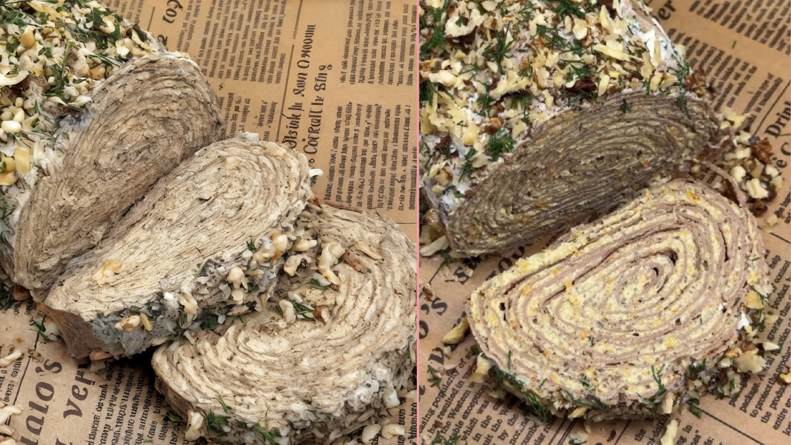 Этот рулетик больше похож на торт – шикарный, вкусный, но закусочный. Как его приготовить показали в блоге zefirka_recipes.
