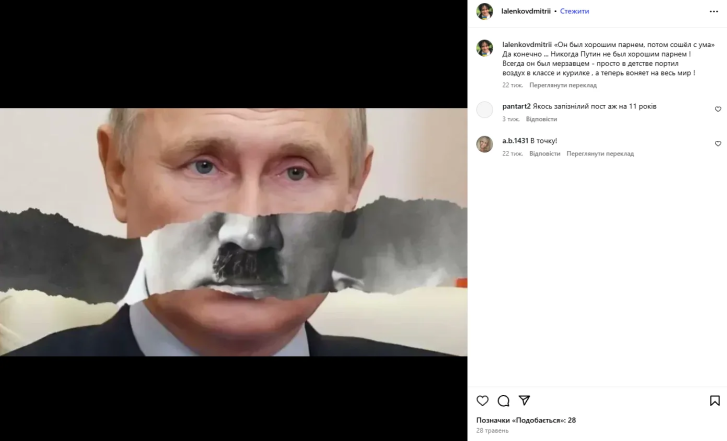 Сейчас артист активно гастролирует по Украине с театральными постановками, а его страницы в соцсетях полны поддержки ВСУ. Лаленков резко осуждает злость России, именует путина “мерзавцем” и пишет, что оккупанты “исчезнут в пустоте”.