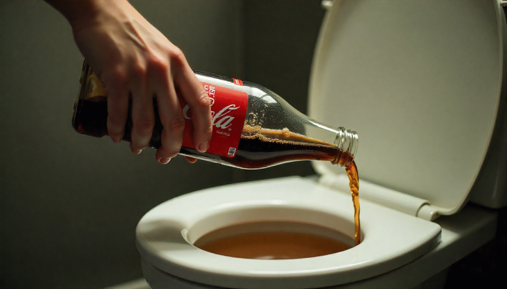 Есть разные способы убирать налет из чаши унитаза. Один из них – с использованием кока-колы. Этот газированный напиток обладает эффективными моющими свойствами.