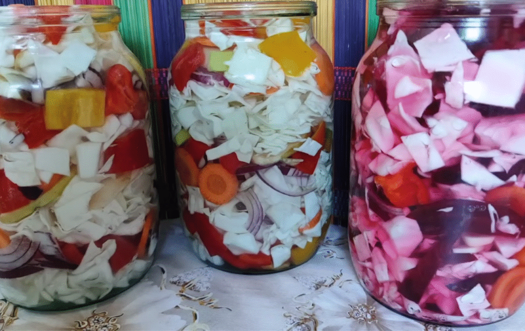 На портале “Хорошие новости” поделились рецептом аппетитного квашеного ассорти из разных овощей. Выходит очень вкусно, ярко, и, главное, — в каждой банке можно найти что-то, что понравится больше всего.