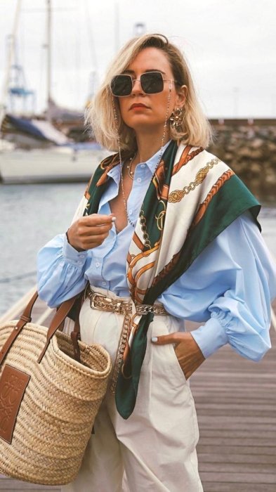 Истинная роскошь — в деталях. И шелковый платок, как у икон стиля, способен преобразить даже самый строгий образ. Его можно повязать на шею, на запястье, в волосы или на ручку сумки — и каждый раз он будет звучать по-новому. Настоящие ценительницы выбирают платки из натурального шелка, с утончённым принтом. Hermès, Burberry, Versace — классика, но и менее известные бренды создают не менее элегантные версии. Главное — качество ткани и благородство оттенков.