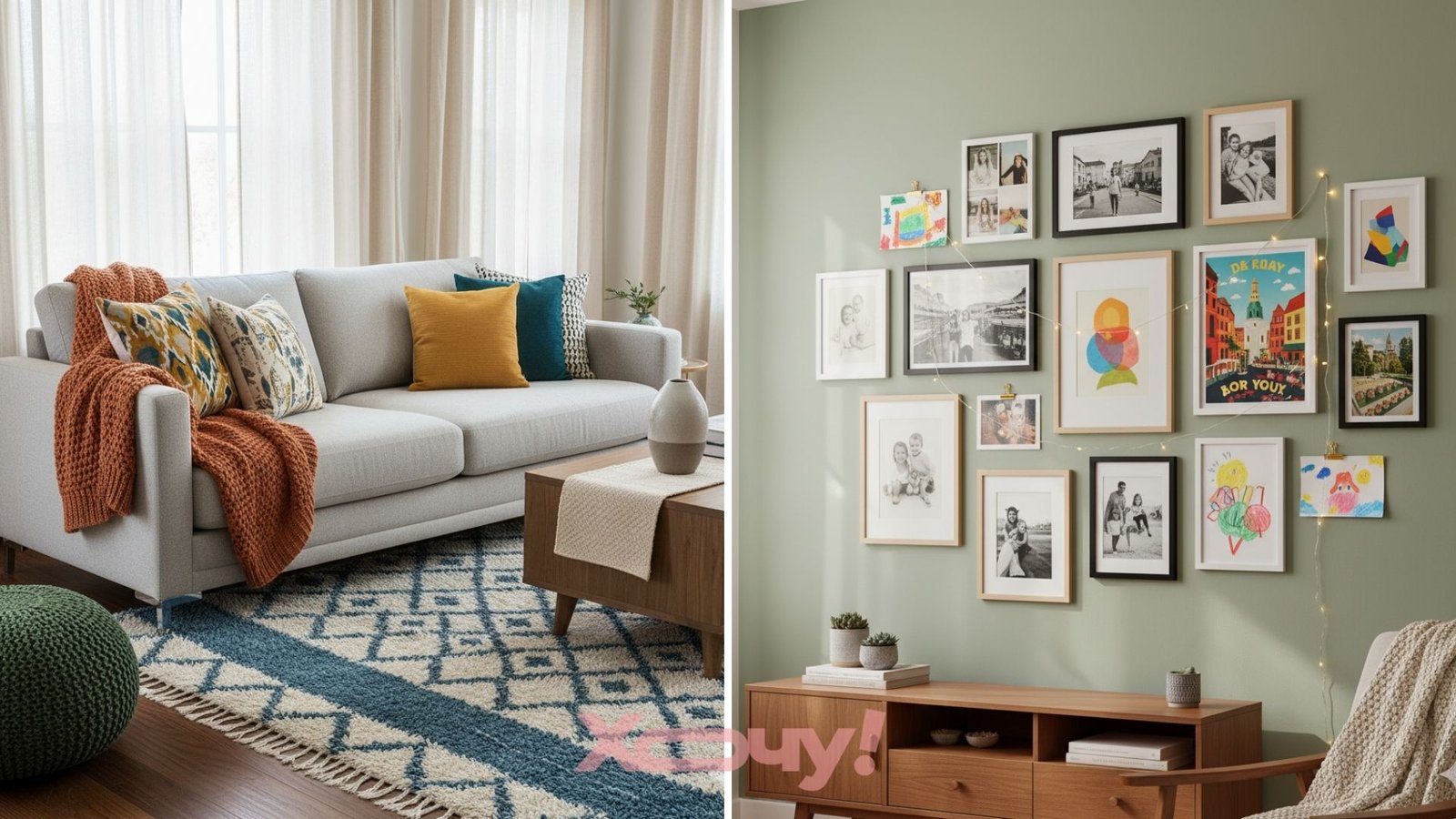 Не всегда хватает денег на дорогие картины или даже репродукции. Можно разместить детские рисунки, фото из путешествий или свои любимые фото. Это подарит уют и создаст хорошие воспоминания.