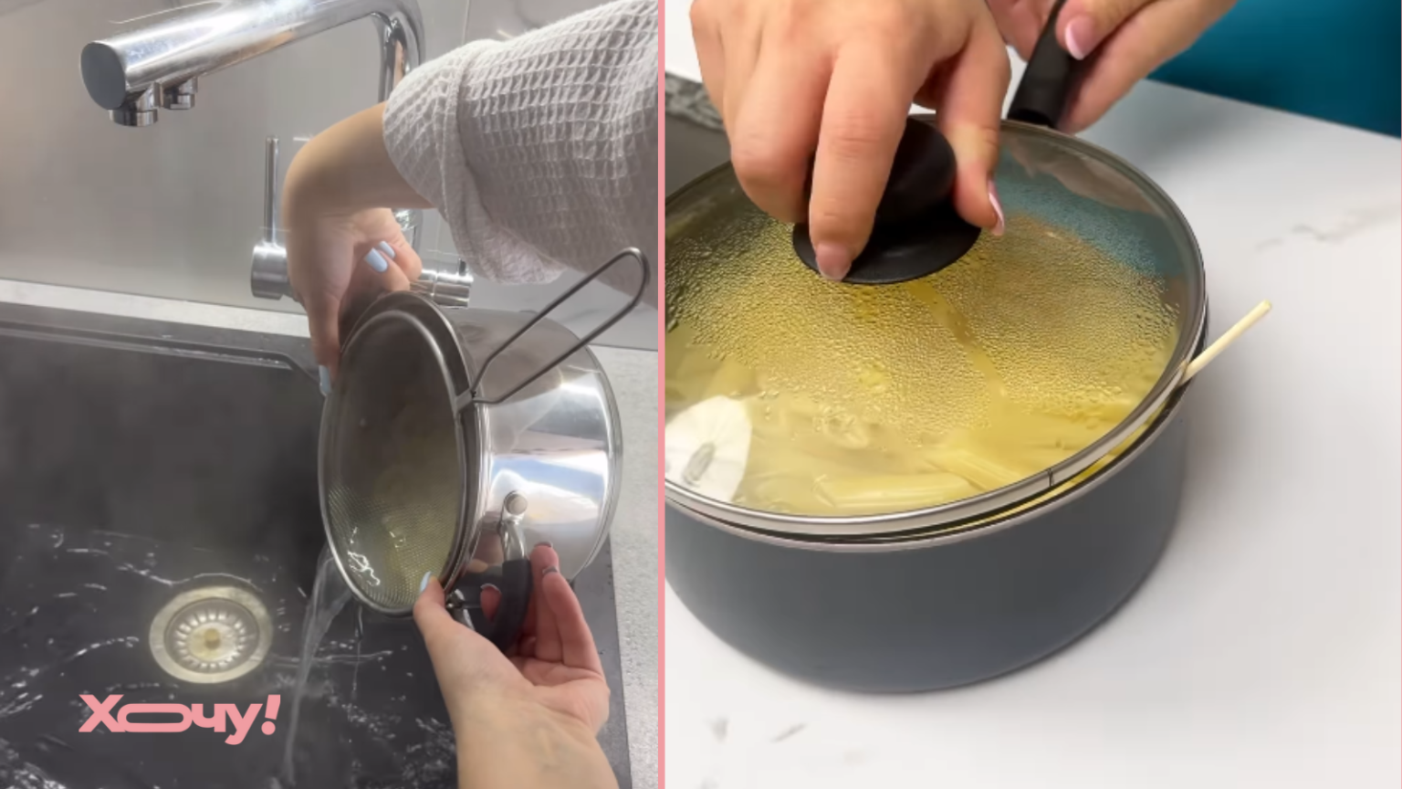 Секрет в том, как именно вы используете дуршлаг. Однако, если у вас дуршлаг на одной длинной ручке, это может быть не очень удобно. Но есть способ отцеживать воду, которая решит эту проблему.
