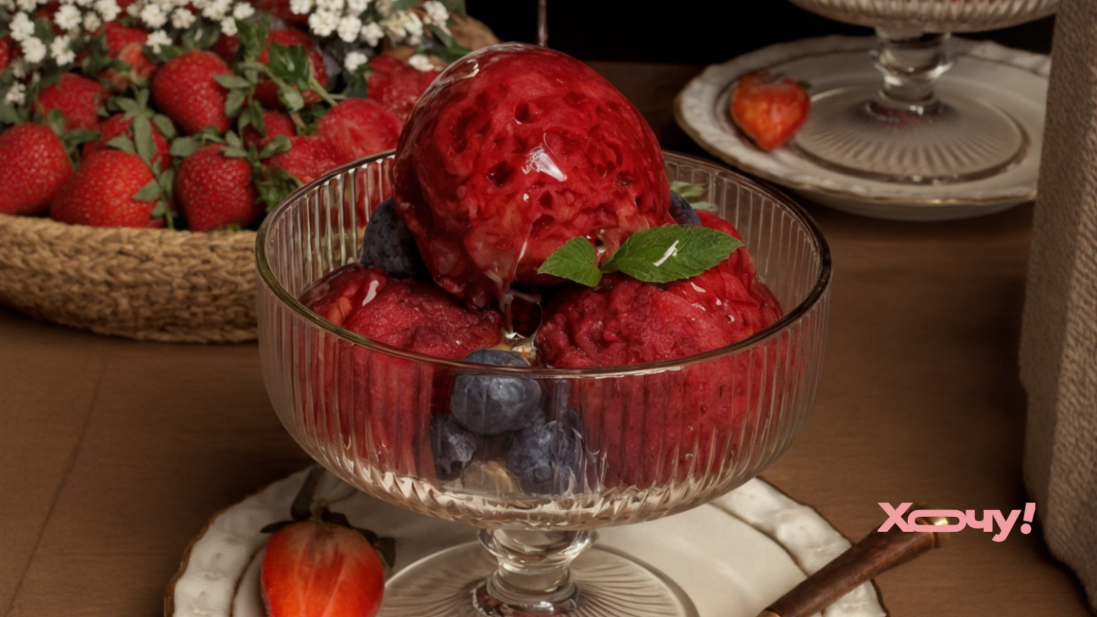 Сорбет – это мороженое, которое в большинстве случаев готовится без молочных продуктов. В рецепте из кулинарного блога fairynatales есть йогурт, но он там однозначно не на первых ролях – лишь оттеняет яркий вкус ягод и смягчает текстуру.