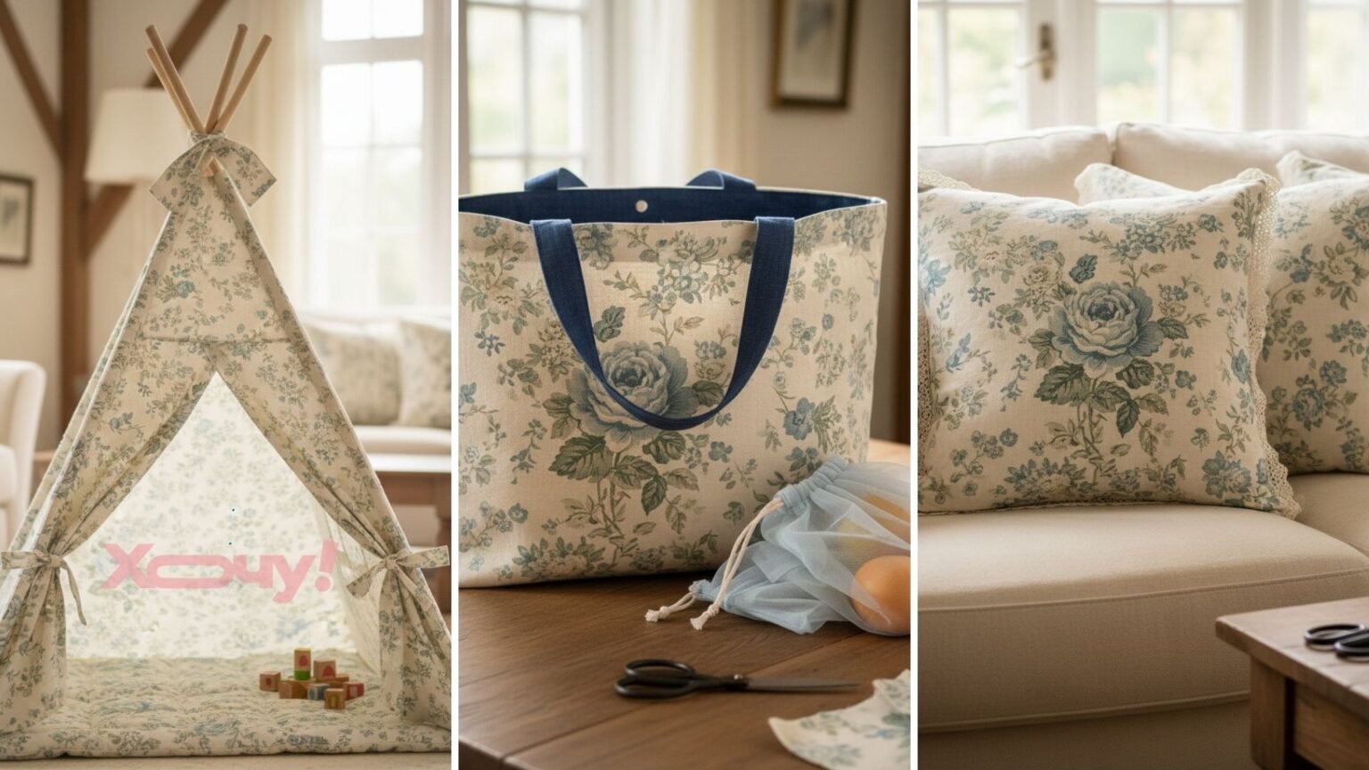 Плотные шторы отлично подойдут для изготовления стильной хозяйственной сумки. Можно сделать сумку двухслойной, используя контрастную ткань внутри.