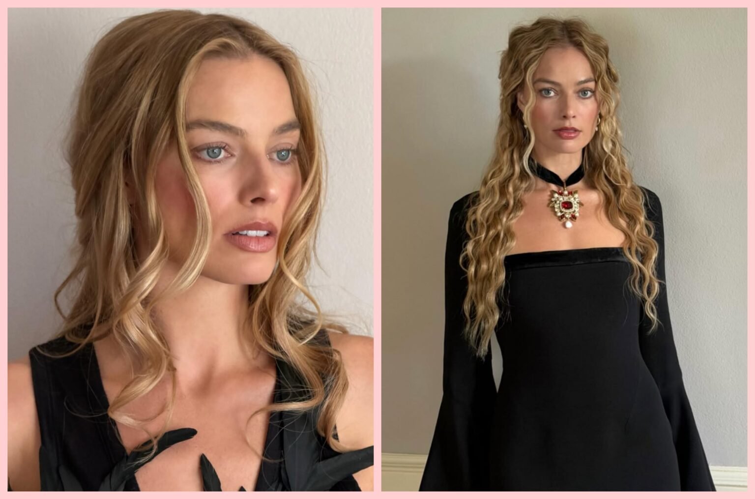 Образ, вдохновленный Марго Робби, строится на игре контрастов: максимально натуральная кожа, почти незаметный макияж глаз и одновременно выразительные румяна и губы в терракотовой гамме. Румяна щедро нанесены на яблочки щек, словно после прогулки по прохладному городу или эмоциональному чтению стихов.