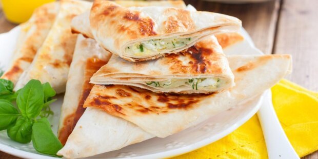 Тем временем, отправляем сковороду на огонь и ставим жарить наши лаваши. Готовим по две минуты по обе стороны.